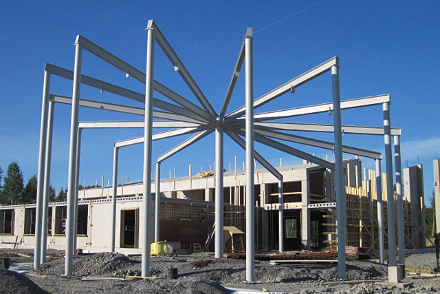 Ravintolarakennuksen teräsrakenteiden valmistus ja asennus.