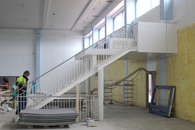 VIP-katsomon kaiteiden ja käsijohteiden valmistus ja asennus.
