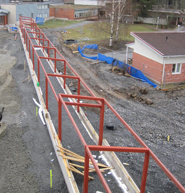 Yhdyskäytävän teräsrunko, valmistus ja asennus.
